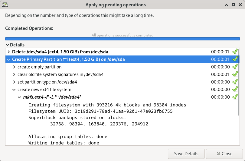 Create a new partition dialog.