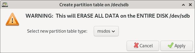 Create partition table dialog.
